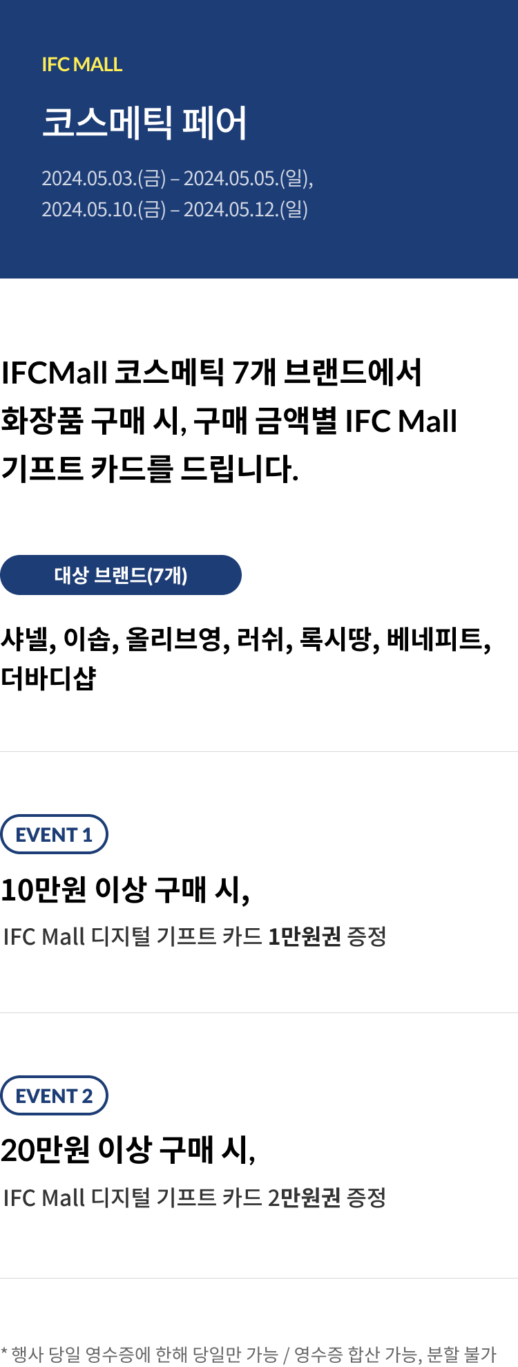 IFC MALL SEOUL은 (이하 '회사'는) 고객님의 개인정보를 중요시하며, "정보통신망 이용촉진 및 정보보호"에 관한 법률을 준수하고 있습니다.