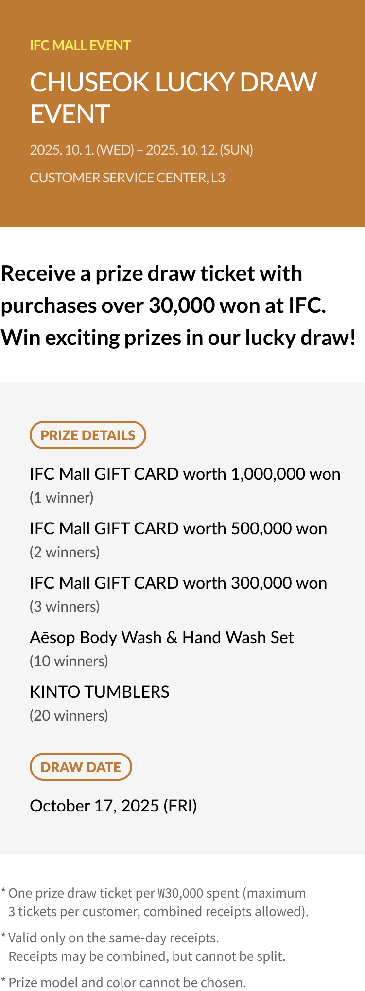 IFC Mall SEOUL (hereinafter referred to as 'Company') values your personal information and complies with the Act on the Promotion of Information and Communication Network Use and Information Protection.